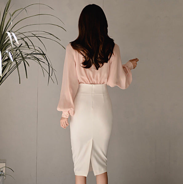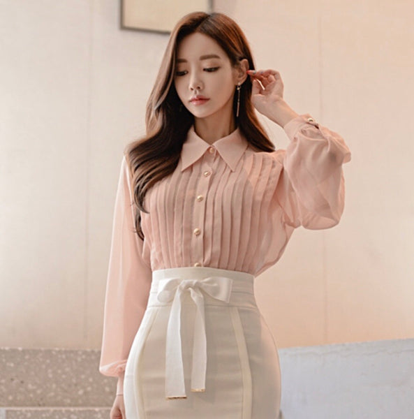 Graceful Single Breasted Draped Lantern Sleeve Blouse.